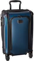 A blue suitcase with a textured surface and a black handle on top is shown from a front view. The suitcase has a silver lock and a black wheel on the bottom right corner. | Tumi Tegra Lite Max International Expandable Carry-On Carry on Luggage | ea1ccdd6535b0a91a6bcf5a71b348cd5748771c12a84fdfcd5bbee62c6ac3ca9 | 001229711988 | 0 | 0 | 34 | 10 | 0 | 0 | |