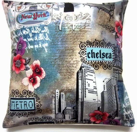 A pillow with a vintage postcard design featuring a cityscape with skyscrapers, a prominent building with the word 'CHELSEA' on it, and a smaller building with the word 'METRO' on it. The design includes floral elements, a clock, and various decorative patterns. The postcard has a New York theme with a 'NEW YORK' logo at the top and a quote in a cursive script. | Decorative Pillow Cover One Blue Red Black White New York Design Novelty Print Toss Throw Accent 16 inch | d2c4130fb6c9a94dde2159f1ccc718d973ea4a61dc6cfb21f16d5a52a976b812 | 001229712164 | 0 | 0 | 64 | 18 | 0 | 0 | |