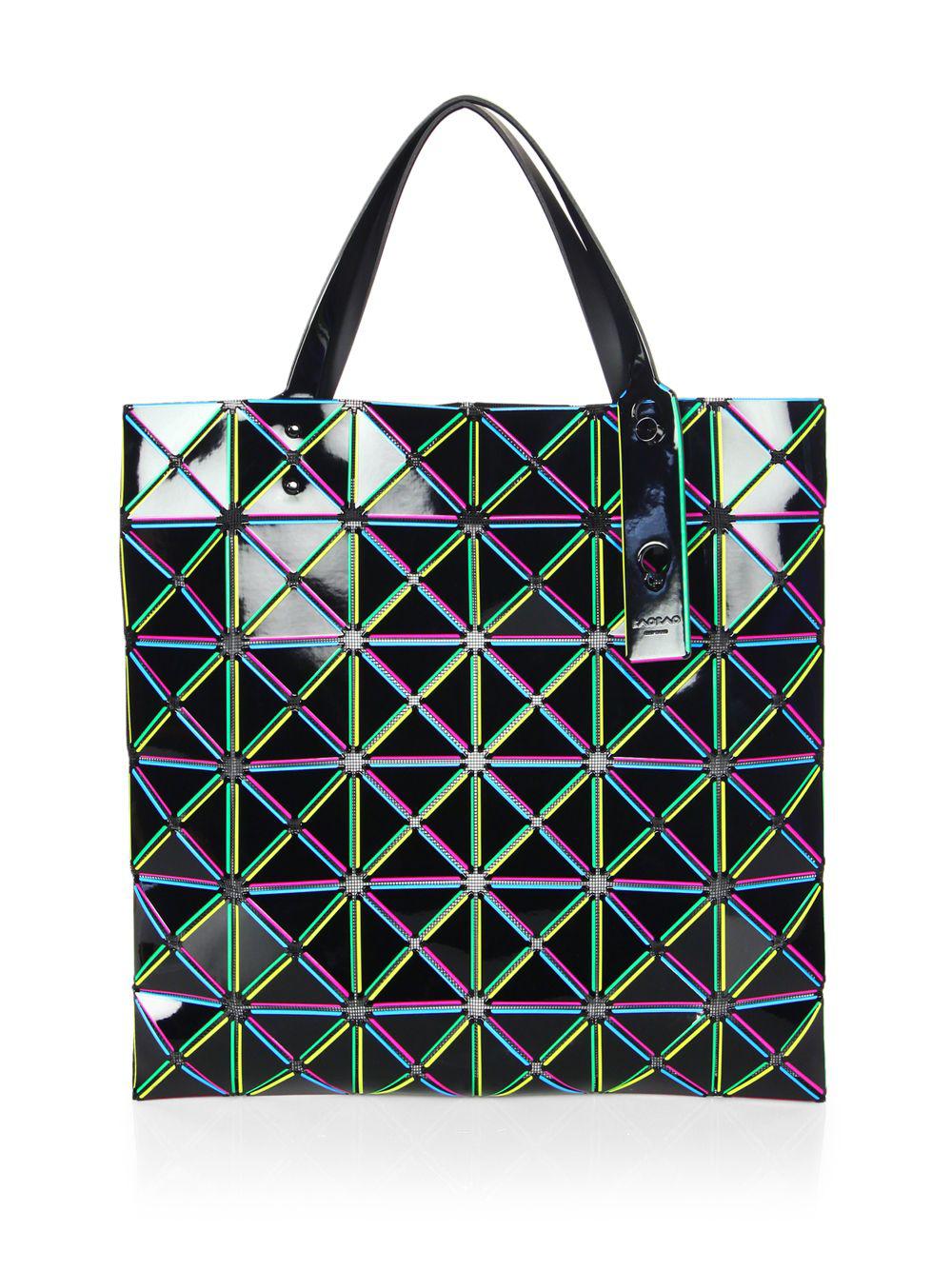 A black handbag with a geometric pattern featuring bright neon colors such as pink, green, blue, and yellow. The pattern consists of interlocking shapes that create a three-dimensional effect. The bag has a black handle and a zipper closure. | 86a650532394 Lyst - Bao Bao Issey Miyake Lucent Comet Tote in Black - Save 40% | 4bea6f15dbd5c3ea78589640a311074c4e56ad60a8914d2d96d0a81795d30f27 | 001229712189 | 0 | 0 | 39 | 15 | 0 | 0 | |