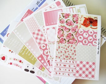 A stack of colorful stationery items, including stickers and a notebook, is placed on a surface. The items are arranged in a way that they are visible from the top, with the stickers on top and the notebook at the bottom. The stickers feature various designs, such as hearts, flowers, and geometric shapes, and are in shades of pink, green, and blue. The notebook has a pink cover with a floral design and is bound with a pink ribbon. | Planner Stickers - Tea Roses | 4eb8f8157fc98a780726e3ba72e1ad9746ff55065c7e63660f0eedbe20b24b0f | 001229712262 | 0 | 0 | 79 | 5 | 0 | 0 | |