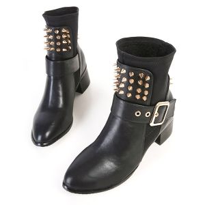 A pair of black high-heeled ankle boots with silver buckles and pointed toes. The boots have a shiny leather finish and are adorned with silver spikes on the heel and toe caps. | Punk Buckle Studded Chunky Heel Boots - BLACK 39 | 9772c9c96e5986fc0f3e7e40775f17b993746b51e8e53543455a7b6bdf3321d2 | 001229712371 | 0 | 0 | 32 | 9 | 0 | 0 | |