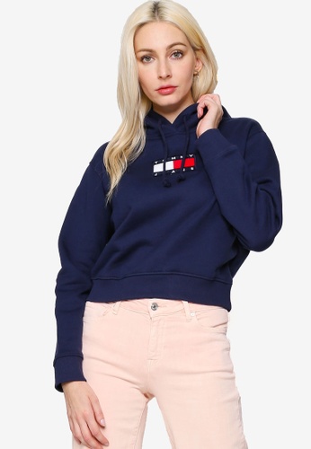 A woman is wearing a navy blue hoodie with a red and white logo on the front. | Tommy Hilfiger navy Tommy Flag Hoodie 79C3BAAF4BEC4DGS_1 | 87aa828707e4da1339ac23693db8077138beda107de2ff94784dee81b59282c9 | 001229712500 | 0 | 0 | 17 | 7 | 0 | 0 | |