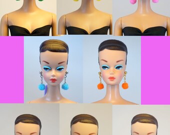 A collection of six mannequin heads with different hairstyles and makeup. The first head has a black bob cut with a center part, blue eyes, and a red lip. The second head has a black bob cut with a side part, blue eyes, and a red lip. The third head has a black bob cut with a center part, blue eyes, and a red lip. The fourth head has a black bob cut with a side part, blue eyes, and a red lip. The fifth head has a black bob cut with a center part, blue eyes, and a red lip. The sixth head has a black bob cut with | Barbie Doll Repro Vintage FR Poppy Parker Handmade Lot 8 colors 8 pairs pompom Earrings NE100603 | e84406b396207eee76e56d22dea77c8d2b252079cc5115f03dbb60e881eb27e1 | 001229712954 | 0 | 0 | 110 | 16 | 0 | 0 | |