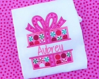 A pink polka-dotted background with a white cloth napkin featuring a pink and red embroidered design of a gift box with a bow on top. The napkin has the name 'AUBREY' embroidered in cursive script on the front. | Girl's christmas shirt, Girl's present shirt, Girl christmas shirt, girl Christmas bodysuit, present shirt, santa shirt, monogrammed | 06c4c12117cb32f5cebea423b83b867b3b617437b203697b7b47ed13fe3f5c9f | 001229712875 | 0 | 0 | 38 | 17 | 0 | 0 | |