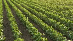 Aerial view of a vast cornfield with rows of green corn plants neatly arranged in a grid pattern. The field is divided into sections by narrow paths, and the rows are oriented in a north-south direction. The soil between the rows is visible, and the overall scene conveys a sense of order and agricultural productivity. | Soybean field in spring Stock Footage | 75a27310c699e587170d766c271eda52fa5ff778f3d3c30253ab3884d4fc8c2f | 001229713466 | 0 | 0 | 55 | 6 | 0 | 0 | |