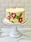 A white cake with a floral design sits on a white cake stand. The cake is placed on a marble countertop against a white tiled wall. | Painted Buttercream Cake | 584527a942402052ae8409bcf93b5813dabc9b8343cfad321e9b53f2a47f5812 | 001229713428 | 0 | 0 | 26 | 3 | 0 | 0 | |