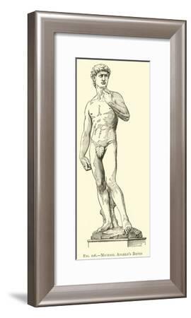 A framed image of a classical male figure with a muscular build, wearing a short-sleeved tunic and a cap, standing on a pedestal with a text label at the bottom. The figure is depicted in a monochromatic style with shading and is surrounded by a plain background. | Michael Angelo's David--Framed Giclee Print | 3523f8c2d05b72b29cf970989d1e974da769c932a60a9528072fdcee4229343e | 001229713507 | 0 | 0 | 47 | 5 | 0 | 0 | |