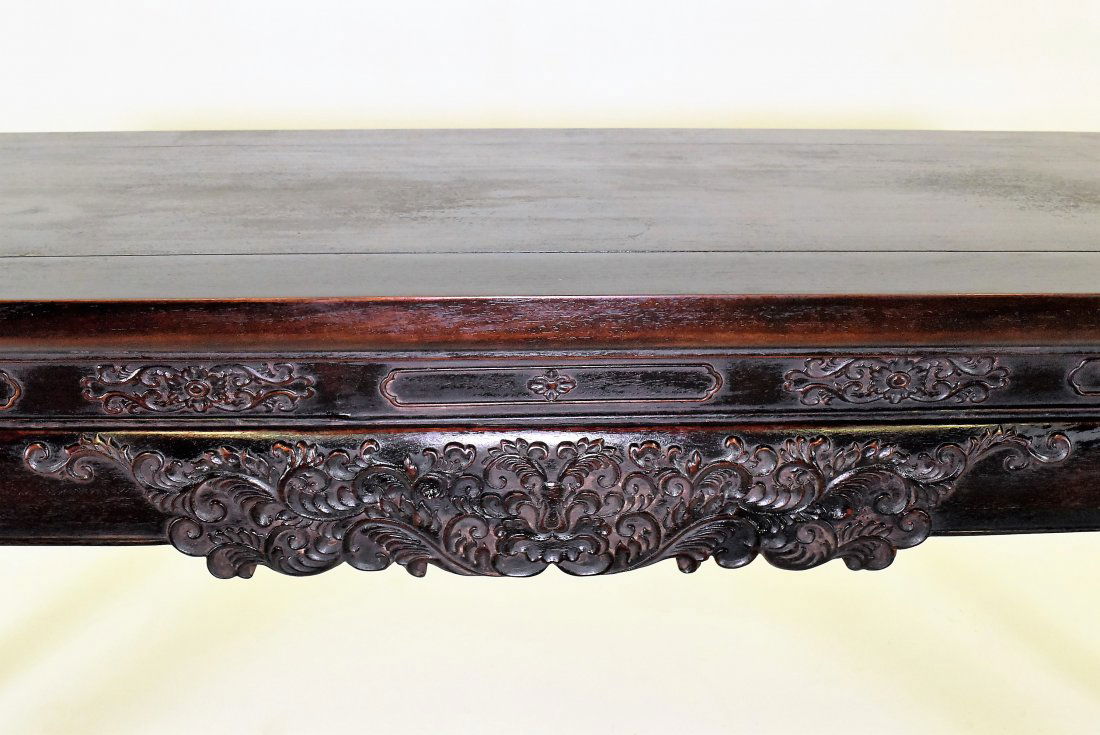 A dark wooden table with intricate carvings on the edges and a smooth surface. | CRAVED ZITAN ALTAR TABLE WITH ROCOCO FLORAL MOTIF - 4 | 4692fbb63d383a84bc8d184f29b37c6e4e7c4c954e4d1226822fa57f1dfb35dd | 001229713517 | 0 | 0 | 14 | 10 | 0 | 0 | |