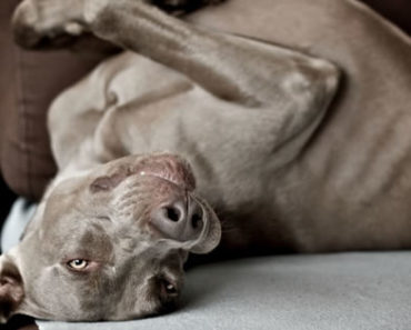 A grey dog is lying on its back on a couch with its front paws in the air. | Why Your Dog\xe2\x80\x99s Stomach Might Be Making Noise | 08d36f246bf35e4b1cf074d23448a780b10d7467bb9b490926a65880861535ec | 001229713596 | 0 | 0 | 18 | 8 | 0 | 0 | |