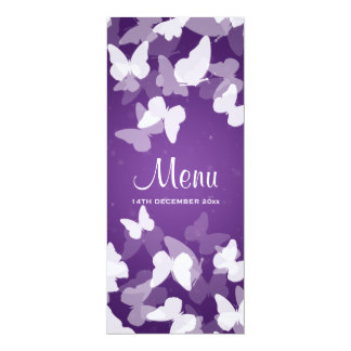A menu card with a purple background featuring a pattern of white butterflies. The card has a decorative border and the word 'Menu' is written in a cursive font at the top. The date '14 December 2019' is written below the word 'Menu'. | Elusive Butterflies Purple Wedding Menu Card | deb353523edb49acb50bc7acaa422820c2ed96d4420b38bd825ff43a5b7c09dd | 001229713505 | 0 | 0 | 43 | 6 | 0 | 0 | |