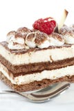 A slice of chocolate cake with a layer of white frosting on top is placed on a white plate. The cake is garnished with a raspberry and a piece of chocolate on top. The plate is on a table, and there is a silver fork to the right of the plate. | Chocolate cake Stock Images | d1f51ccf86e06e7806cffdfbb42f806eae4c34ac7c6716594416f995eb95576a | 001229713519 | 0 | 0 | 51 | 4 | 0 | 0 | |