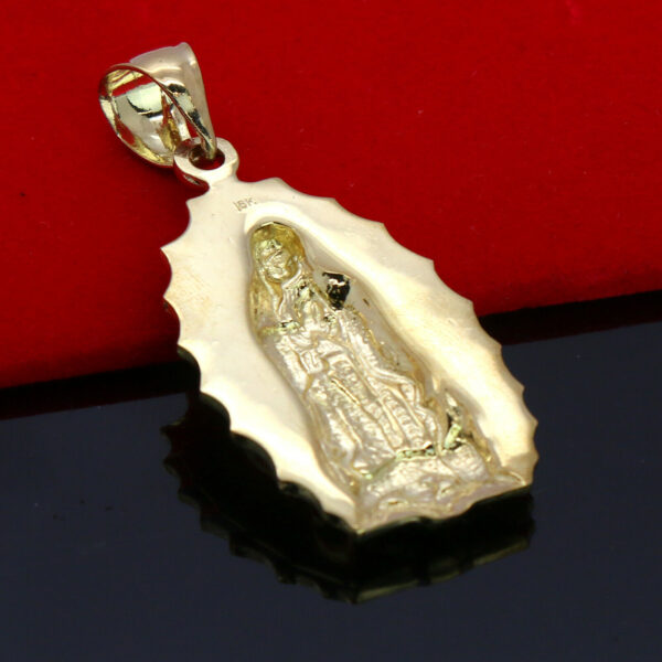 A gold pendant with a detailed image of the Virgin of Guadalupe is displayed on a black velvet cloth. | Our lady of Guadalupe Pendant With 18" Figaro Choker Chain | 2cc2df54d1e610becdf52ab2cf8080bb6b9cc94dc370f9bad2669960b8e544ab | 001229714291 | 0 | 0 | 19 | 10 | 0 | 0 | |
