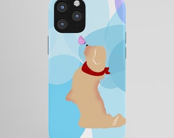 A brown dog with a red collar is standing on its hind legs, holding a pink butterfly in its mouth. The dog is wearing a red bow tie and is surrounded by a blue and white abstract background. The image is on a phone case with a camera lens at the top. | Cream Havanese Dog on Phone Case - Labrador retriever, Samsung S20, iPhone SE, Gifts for Pet Lovers, Samsung S9, iPhone X, iPhone 11 | 6fc0cc96b8a0be925d700b416fccc78476a7fc0053c800fa2b02771f665495fa | 001229714169 | 0 | 0 | 52 | 23 | 0 | 0 | |