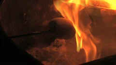 A close-up image of a marshmallow on a stick being toasted over a campfire. The marshmallow is golden brown and slightly charred, with a visible flame licking at it. The background is dark, emphasizing the bright orange and yellow hues of the fire. | Roasting marshmellow over fire Stock Footage | 2cb2067f75f0cc0854935a06cc68a9ce1e4aea48378049c32792a3842c799ab7 | 001229714300 | 0 | 0 | 43 | 6 | 0 | 0 | |