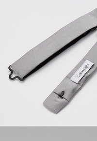 A grey fabric tie with a black label on the right side is laid out on a white background. The tie has a smooth texture and a simple design, with a black clasp at the bottom. | Calvin Klein - SOLID BOWTIE - Bow tie - charcoal | feb517596b835d6a984574e6a693328b92160349489ca0e55ddd312574e23294 | 001229714331 | 0 | 0 | 36 | 10 | 0 | 0 | |