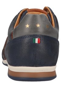 A close-up view of a sneaker with a blue upper featuring a star pattern and a red, white, and green Italian flag patch on the side. The sneaker has a brown leather toe cap and a white sole with brown accents. | Pantofola d'Oro - Sneakers laag - dress blues - 3 | edc19eaaafff900935a591d97d988078f4c2b702d91e7a5a374f8f8129d924a2 | 001229714341 | 0 | 0 | 41 | 10 | 0 | 0 | |