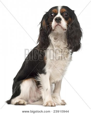 A brown and white dog with floppy ears and a white patch on its chest sits on a white background. The dog has a shiny coat and is looking directly at the camera. The image has a white border with the text 'BIGSTOCK' and a watermark with the website 'bigstock.com' and a unique identifier '23210941'. | Cavalier King Charles Spaniel, 14 months old, sitting in front of white background | b3ea04f4de7b47e869de0ccce2e8c6c9a1b721fc36135729114d8e34ab79cd40 | 001229714985 | 0 | 0 | 55 | 13 | 0 | 0 | |