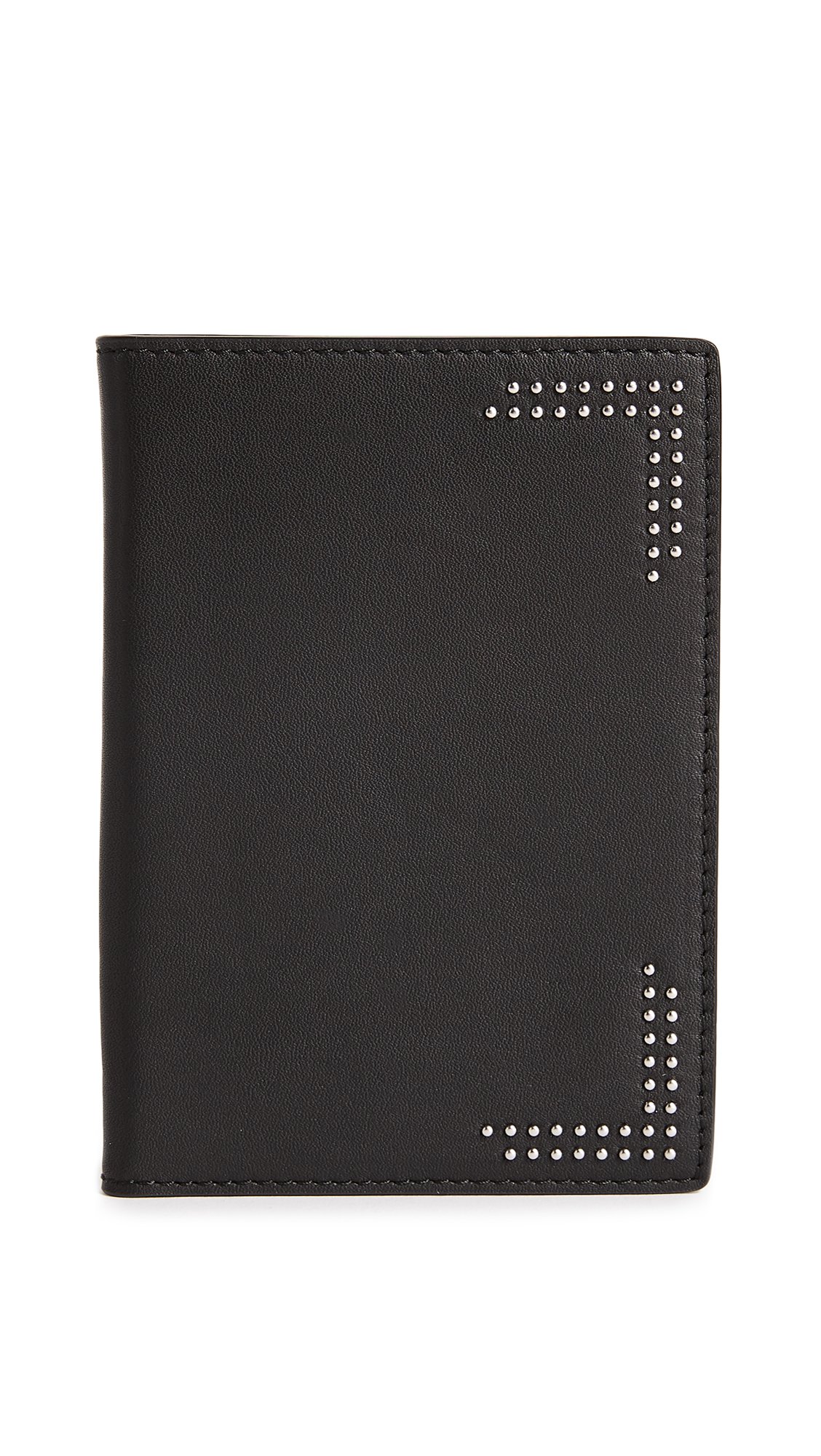 A black leather wallet with a silver zipper closure and a silver logo on the front. | Mackage Women's Otis Passport Case, Black, One Size by Mackage | 891fb9996a24eaa89fe0ca19cba1e13a221b1090c2a0cc0df2ece7c88129f75d | 001229715629 | 0 | 0 | 16 | 10 | 0 | 0 | |