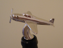 A silver airplane model with a shiny metallic finish is displayed on a black stand. The airplane has a propeller at the front, wings, and a tail section. The stand is placed on a surface with a gradient from light to dark, and the background is a plain, light-colored wall. | Airplane Bottle Stopper by Godinger Silver Co. MIS-0106 - $19.79 | e8982f547546480aa86271c43a4b5de8f3eb9decfa3b7b8727eacaf7596fe47b | 001229715530 | 0 | 0 | 50 | 10 | 0 | 0 | |