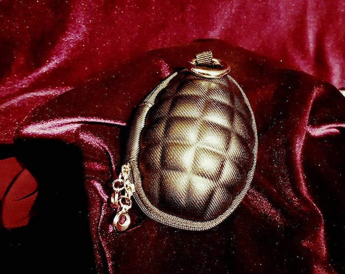 A small, ornate, gold-colored handbag with a textured surface and a chain strap is placed on a red velvet cloth. | Grenade purse - purse gothic granaat granate goth | f0adf41548cf786fbc7fae65c9ac5e504dc4f675e27fa1341a5709430e7e16e8 | 001065759680 | 0 | 0 | 20 | 8 | 0 | 0 | |
