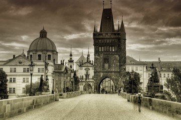 A sepia-toned image of a historic European cityscape with a prominent cathedral featuring a dome and two spires. The sky is overcast, and the buildings have a classical architectural style. A bridge with a cobblestone road leads to the cathedral, and there are a few people walking on the bridge. | Old and historic Charles Bridge in Prague | 6bc098525010b88edc86a3657b548696c8d63d6990484238b1cfb135d3cf2d4d | 001065759685 | 0 | 0 | 50 | 7 | 0 | 0 | |