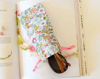 A book is open to a page with a floral pattern, and a pair of sunglasses with a wooden frame and pink ribbon is resting on the page. | Floral glasses case , glasses case , glasses pouch , eye glasses case , summer gift , liberty of london , spectacle case , teacher's gift | f2c4574a0cd7a17bb76a59aaeaf43c75131445b85ddf2e63d339dfa3c27e18e5 | 001065759965 | 0 | 0 | 28 | 26 | 0 | 0 | |