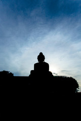 A large stone statue of a person stands atop a hill, with a clear blue sky above and a few clouds scattered around. The statue is positioned in the center of the image, and the surrounding landscape is darkened, possibly due to the time of day or weather conditions. | Big Buddha Silhouette, Phuket , Thailand | 329644778a9caa22234a6c815bb56575fadf5cfe7e2a52677315129d0b126509 | 001065760337 | 0 | 0 | 49 | 6 | 0 | 0 | |