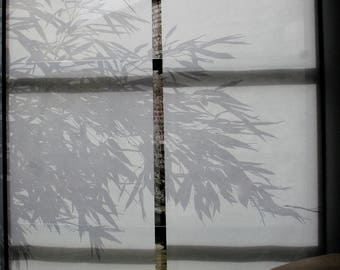 A window with a sheer white curtain partially drawn, allowing a view of a bamboo tree outside. The bamboo tree's shadow is cast on the curtain, creating a pattern of dark lines. The window frame is visible, and the overall scene is serene and natural. | Japanese Bamboo Lynn panels | 0a777a28bb64140143c7560c892b3d8c4e2537b1c283227aa813d17df3544621 | 001065760538 | 0 | 0 | 45 | 4 | 0 | 0 | |