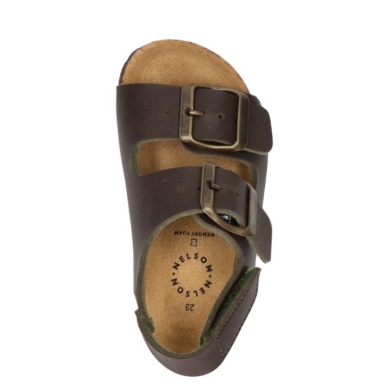 A pair of brown leather sandals with a single strap and buckle detail. The sandals have a flat sole and are placed against a white background. | Nelson Kids - Sandalen - Bruin | 128642ad4dbdd3256dbea4e27dd0f5b5982443025e68bccb579f0bcb63e9f0b7 | 001065761205 | 0 | 0 | 26 | 6 | 0 | 0 | |