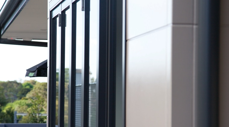 A modern apartment balcony with a glass railing and a view of a cityscape. The balcony is adjacent to a building with a tiled wall and a window that reflects the cityscape. The balcony has a metal frame and is partially covered by an overhanging roof. | Designer Series panels in Urban Grey have a architecture, door, facade, glass, house, siding, window, white, black | afa4dd997210cdf2e35f651aae2d8a356b0ce52fe655381117ea24a087a7291c | 001065761280 | 0 | 0 | 46 | 17 | 0 | 0 | |