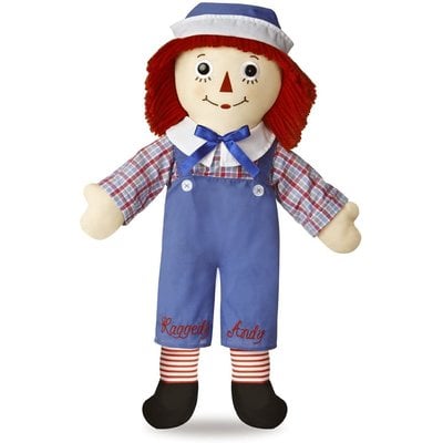 A plush toy of a character with red hair, wearing a blue hat, a red and white checkered shirt, blue overalls with red and white stripes, and black shoes with red and white stripes. The character has a smiling face with a red nose and is holding a red and white striped ball. | AURORA 25" RAGGEDY ANDY | e6d7c07c19438a2ef42449aa0055addbff85fcd071a5e9a9ed3babad8b887aaf | 001065761715 | 0 | 0 | 53 | 4 | 0 | 0 | |