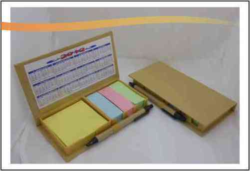 A wooden box with a lid is open, revealing a set of colorful sticky notes inside. The box is placed on a white surface, and there is a yellow and orange border at the top of the image. | Ecofriendly Memo Pad with Pen | 83b3769ac23d969828bbfe7d2bbcd1810ffa222bcd22b823014e82bd9d650749 | 001065761662 | 0 | 0 | 38 | 5 | 0 | 0 | |