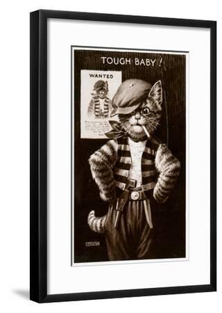 A framed vintage-style illustration of a cat wearing a beret and a vest with a 'Wanted' poster in the background. The cat is holding a gun in its right hand and has a cigarette in its mouth. The illustration is titled 'TOUGH BABY!' and is presented within a black frame. | An Anthropomorphic Cat Smoking a Cigarette--Framed Giclee Print | fd6ae1fb9c465a0f2567dcd202e0cc89d91ad8b0e4a8c67fe2b93024190bf7a1 | 001065761768 | 0 | 0 | 50 | 8 | 0 | 0 | |