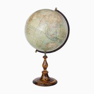 A vintage globe with a detailed map of the world is displayed on a wooden stand. The globe has a textured surface with various shades of brown and beige, indicating different landmasses and water bodies. The stand is made of wood with a dark finish, and the globe is mounted on a circular base that also has a wooden texture. | Large Antique Scandinavian Globe by Jordglob, 1900s | d0060593c0c0069b8f64f74eae76483960542d8abbed75746600aef665aac8c0 | 001065762424 | 0 | 0 | 60 | 7 | 0 | 0 | |