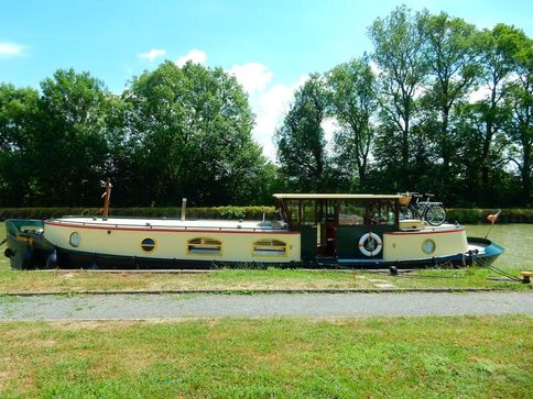 A small, colorful boat with a green roof and yellow trim is docked on the side of a canal. The boat has a wooden structure and is surrounded by lush greenery and trees. The sky is clear and blue, and the overall scene appears to be a peaceful, sunny day. | Boat Share for Sale in Lorraine, France | 6771919784dd9699318ead75c13f65d4b79e9847ce41e1f7a6e81c05834e31a1 | 001065762290 | 0 | 0 | 50 | 7 | 0 | 0 | |
