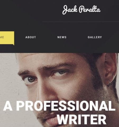 The second image is a close-up of a man's face with a professional writer's website header in the background. The header features a logo with the name 'Jack Peralta' and a tagline 'A Professional Writer'. The website header includes sections for 'About', 'News', 'Gallery', and 'Contact'. The man in the foreground has a beard, mustache, and is looking directly at the camera with a serious expression. | freelance writer | eb2a23de840a9816761c168196784046715c6d9acc0851e85424ff8b03d0ec7e | 001065762333 | 0 | 0 | 66 | 2 | 0 | 0 | |