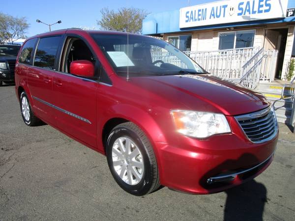 A red minivan is parked in front of a car dealership with a 'SALEM AUTO SALES' sign on the building. The minivan has a shiny exterior and is positioned on the left side of the image. There is a car dealership building with a blue roof and a staircase leading to the entrance. The dealership has a 'SALEM AUTO SALES' sign on the building. The sky is clear and blue. | Photo 2014 Chrysler Town Country - STOW N39 GO - REAR CAMERA - DVD ENTER - $8988 (2014 Chrysler Town Country - STOW N) | 63f7bdddf11d5943304669b698f048347b8123a7ffdac42458511afe4d92df3e | 001065762320 | 0 | 0 | 70 | 24 | 0 | 0 | |