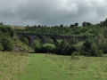 A rustic stone bridge with multiple arches spans over a lush green valley, surrounded by dense foliage and trees. The bridge is situated in a rural landscape with a dirt path leading up to it. The sky is overcast with dark clouds, and the overall atmosphere is serene and somewhat ominous. | Monsal Trail & Ashford-in-the-Water from Lees Bottom | d597a84d7e40ba2f5b7a9f191556f4dac8b6e74dad899bc1a9c2dbb9157e0190 | 001065763342 | 0 | 0 | 51 | 7 | 0 | 0 | |