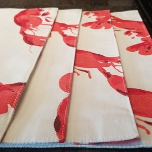 A collection of red and white fabric swatches with a pattern of red lobsters on a white background. The swatches are neatly arranged on a surface, with each swatch having a distinct red lobster design. | kate spade Dining - Kate Spade set o 4 Lobster placemats. NEW | 851c4f482e96f1184b54c28fe30a1caf5851366b5079ec3faa3d591e0114ac38 | 001065763401 | 0 | 0 | 35 | 12 | 0 | 0 | |