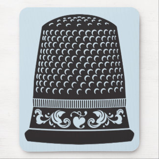 A stylized illustration of a classic chef's hat with a decorative band around the base. The hat is predominantly black with a pattern of concentric circles and lines, resembling a traditional chef's hat. The band features intricate designs with hearts and swirls. The background is a light blue color, and the hat is centered on the image. | Thimble by FiberFlies Mouse Pad | 657c858eac6c2a57639ebc048d82bd9b722ce1c42ad9c25eb80e89e15d664192 | 001065763477 | 0 | 0 | 57 | 5 | 0 | 0 | |
