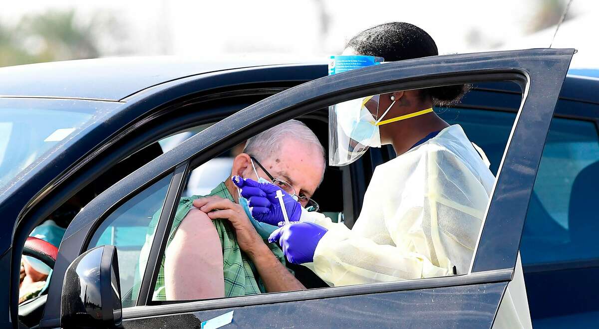 A healthcare worker in a hazmat suit is assisting a patient in a car. The patient is wearing a surgical mask and is seated in the back seat of the car. The healthcare worker is wearing a full hazmat suit, including a face mask, and is leaning into the car to attend to the patient. The car is parked, and the scene appears to be taking place in a public area with buildings in the background. | People pull up in their vehicles for Covid-19 vaccines in a parking lot in Inglewood, California on January 19, 2021. | 1c0430490e372d80198ddda8570c14db3a832edfd65774d5575d529e12086de1 | 001065763448 | 0 | 0 | 76 | 20 | 0 | 0 | |