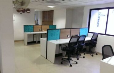 A modern office space with beige walls and a tiled floor. There are four workstations with wooden desks and teal partitions. Each workstation has a black office chair and a computer monitor. The room is well-lit with natural light coming through the windows on the right. There is a ceiling fan and a ventilation system above. The office has a clean and organized appearance. | Hanu reddy business center Nungambakkam | 4b342cd01beb4e2d7b1617998f39928ce09f410c5e11232de90e14ab75ac4cee | 001065763439 | 0 | 0 | 64 | 5 | 0 | 0 | |