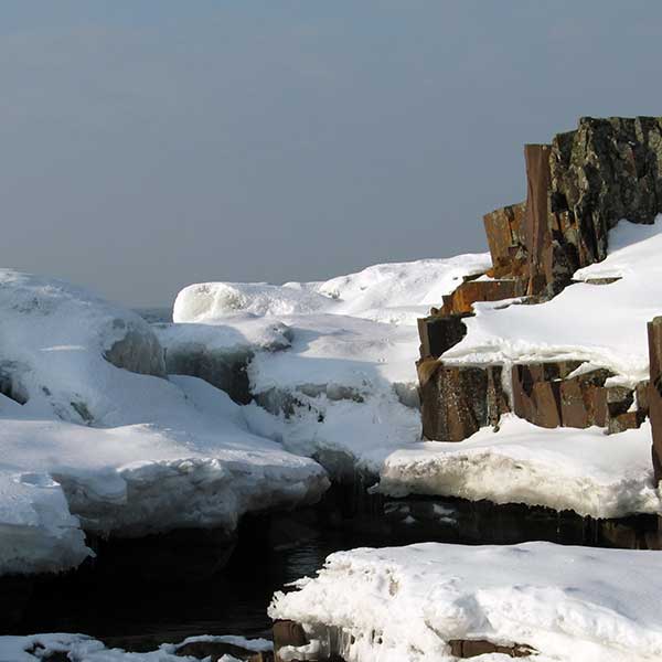 A snowy landscape with a large, jagged rock formation on the right side. The ground is covered in snow, and there are several large ice formations in the foreground. The sky is overcast, and the overall atmosphere is cold and wintry. | snow covered rocky outcropping of lake superior | 9077edf869304f1dcb0dae4ee233636dc1df4fe37bf202fc8f7994d9e6f3b43f | 001065763411 | 0 | 0 | 41 | 7 | 0 | 0 | |