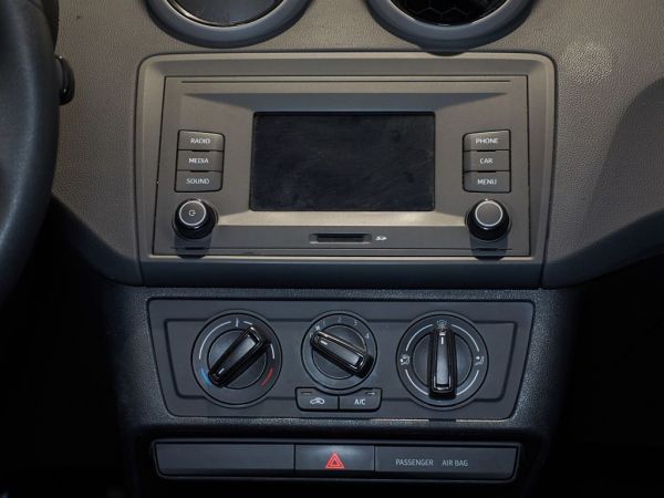 The first image shows the interior of a car's dashboard, specifically the area around the gear shift and the infotainment system. The gear shift is in the center, with three buttons labeled 'P', 'R', and 'D' for park, reverse, and drive respectively. Below the gear shift, there is a small screen displaying a black screen saver. To the right of the screen, there are two knobs, one for volume control and another for the radio. The dashboard is predominantly black with a metallic finish, and the overall design appears to be modern and sleek. | SEAT Ibiza 1.4TDI CR S&S Reference 90 | b1b0d3661c03e39f2208d732c13c1a51b9f787f394bf1dc1a27deabc2201dd21 | 001065763572 | 0 | 0 | 94 | 7 | 0 | 0 | |