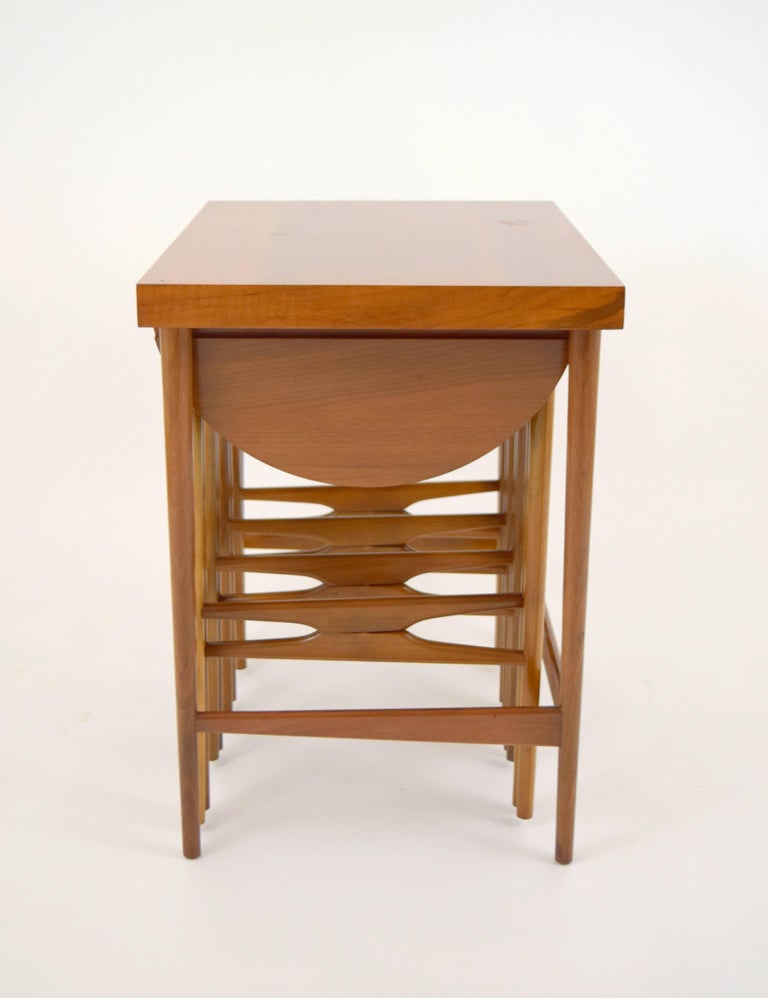 A wooden table with a smooth, glossy finish and a curved leg design is displayed against a white background. | Bertha Schaefer for Singer & Sons Walnut Nesting Table Set In Good Condition For Sale In Chicago, IL | 187238eab080ebff76a23273f387f7735850602f067835c1b09b04404cfbb4c0 | 001065764172 | 0 | 0 | 19 | 18 | 0 | 0 | |