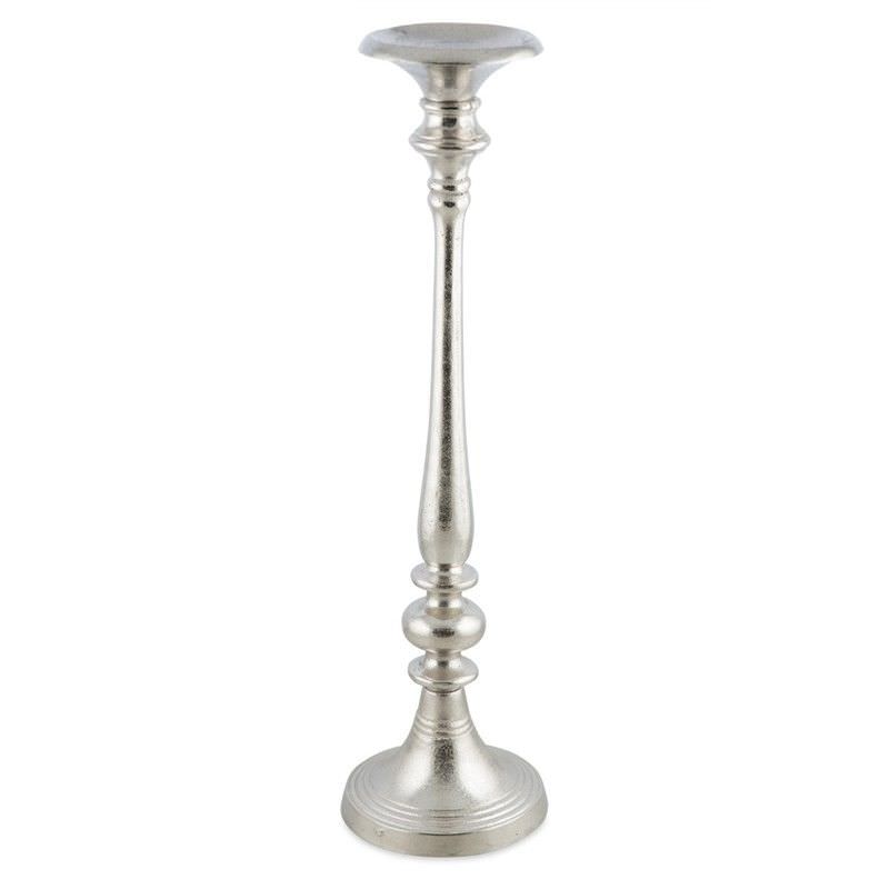 A silver candlestick with a simple, slender design and a round base is displayed against a white background. | Annora Small Aluminium Candle Stick Holder - Silver | 1f8625f11dbc6d49f55c8263176741c8f08822af43e292693e1f94d871c1532e | 001065764281 | 0 | 0 | 18 | 8 | 0 | 0 | |