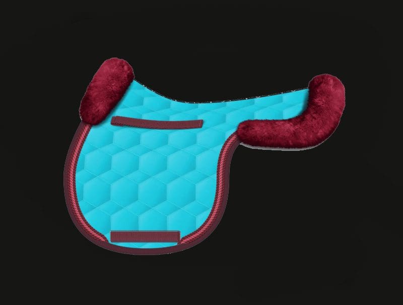 A blue saddle with a red cushion on the backrest and a red saddle pad on the seat is displayed against a black background. | Turquoise All Purpose Sheepskin Numnah | 57aecb6e49f660fb19e8c86660cee4ba69457e8d5dcdfb92961514d2da6de7f6 | 001065764152 | 0 | 0 | 24 | 5 | 0 | 0 | |