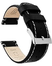 A black wristwatch with a white face and black hands is displayed against a white background. The watch has a black leather strap with white stitching and a buckle closure. The watch face shows the time as 10:10, and there is a small logo at the bottom of the face. The watch has a black bezel with white markings and a date window at the 3 o'clock position. | Barton Quick Release - Top Grain Leather Watch Band Strap - Choice of Width - 16mm, 18mm, 20mm, 22mm or 24mm | 3e2274abc8e82311bc03513cc58392f8fabf4fd5a37efc0e13106a2d9c7fe351 | 001065764418 | 0 | 0 | 68 | 21 | 0 | 0 | |