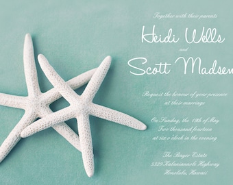 The second image is a close-up of a starfish on a teal background. The starfish is centered in the image, and the background is a solid teal color. The image is cropped tightly around the starfish, with no other elements visible. | 25 cards per set- wedding card invitations - White Starfish | c3292ee6e3599b2ec2ed9ed128405d8ddcbef8b51ea970f53ea5122c62c4ec52 | 001065764376 | 0 | 0 | 41 | 10 | 0 | 0 | |