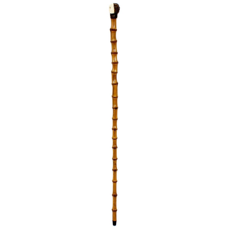 A wooden cane with a curved handle and a series of vertical slats on the shaft is displayed against a white background. | Double Faced Monkey Bamboo Walk Stick or Cane | dac5bffffad7976821d91bf07e8782977af630d34e9df3a7cbb707e53bebd297 | 001065764525 | 0 | 0 | 22 | 8 | 0 | 0 | |
